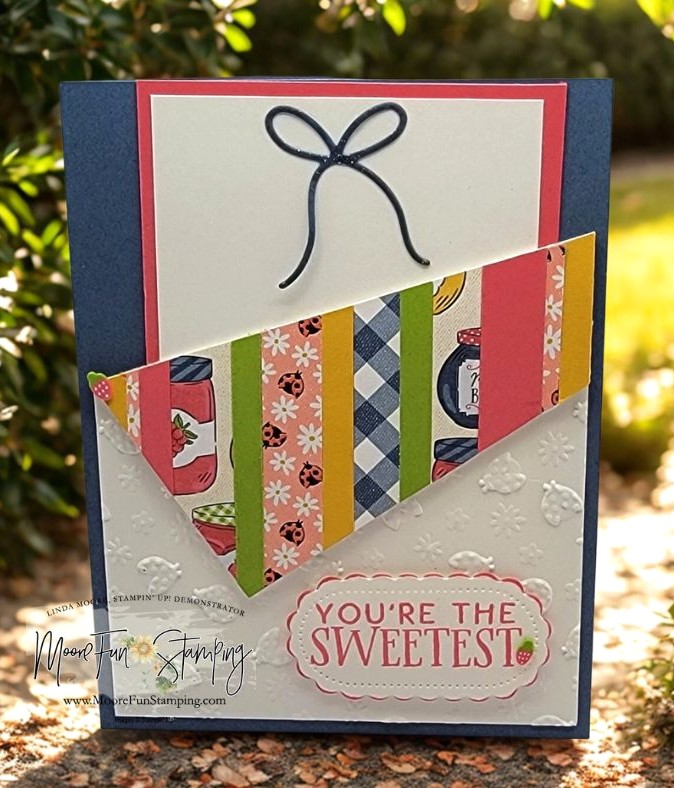 In about two weeks, I will be leaving for Long Beach Onstage. This is a gathering of Stampin’ Up! demonstrators where we get to see new products, reconnect with old friends, and make new ones. I make cards to swap with other demonstrators. So I am making some swaps using the Homemade Sweetness Suite (it’s a March Online Exclusive available March 3rd). I love this suite.